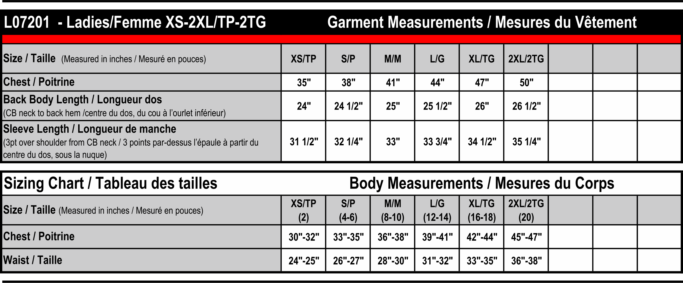 Sizing Details